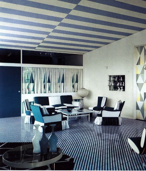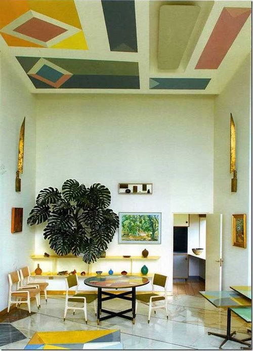 В дизайне интерьеров он оперировал простыми формами и широкими плоскостями. Комнаты выглядели разнообразными благодаря сочетаниям цвета и принта. Понти любил графичную полоску, плоскости яркого цвета, вводил много дерева тёплого, медового оттенка.