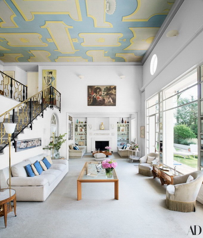 Интерьер виллы также запоминался ассоциациями с классикой. Так, потолки общей зоны кухни-столовой-гостиной, занимающей фактически весь первый этаж (не считая хозяйственных помещений и гаража), он украсил росписью в виде декоративных деталей, отсылающих к творчеству его кумира тех лет, Андреа Палладио, итальянского классициста 16 века, возрождавшего принципы античной архитектуры. Роспись Понти, однако, далека от классицизма по духу: стилизованные детали обведены жёлтыми рамками и помещены на ярко-голубой фон. Напоминает фарфор Понти для Richard Ginori тех лет.